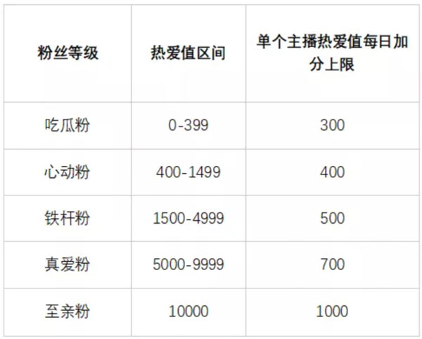 粉丝热爱值加分规则