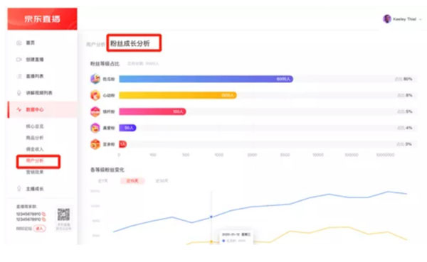直播将粉丝热爱值,通过数值、等级、徽章、互动面板形式呈现在直播间,一方面通过生动可视化的呈现,衡量和表达热爱程度;另一方面,达人和商家可通过不同的粉丝等级设置不同的权益,实现用户关系跃迁,粉丝价值放大。