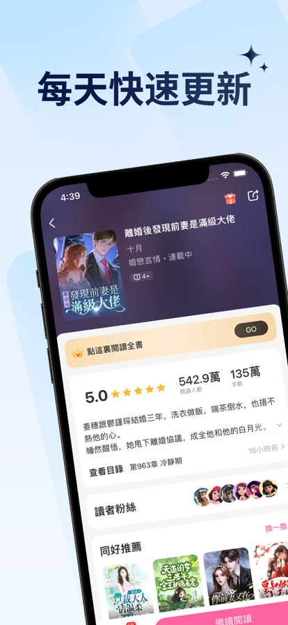 1. 覆盖超人气的网络小说,涵盖都市言情、霸道总裁、玄幻修仙、青春校园、历史军事、官场权势、职场竞技、耽美同人、惊悚悬疑和名人传记等类型;