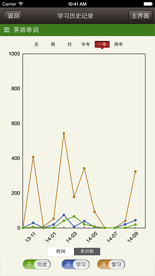 学习时间和学习成果会被自动保存,并呈现学习成果历史曲线,从而使用户更有针对性地调整学习计划。