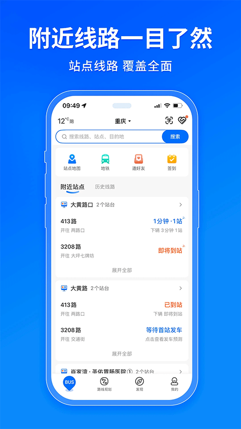 (2)功能最全面:周边线路,附近公交距离多远、还有几站到一目了然;输入起点和终点,智能筛选出多种换乘方案,提供详细的可行性线路和公交站牌信息。