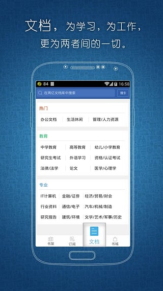 豆丁书房ios版是由“豆丁网”提供的手机阅读客户端,内容涵盖了图书、杂志、行业报告、网络小说以及各行各业的实用文档,超过一亿份文档资料,数百个合作机构和上千位行业名人,为您的私人书房打造最坚实的内容储备。在豆丁书房ios/ipad版本中,针对手机用户进行了特别的优化,所有的文档都能够无缝搜索、下载、阅读,同时能实现各终端设备上使用信息的同步和更新,是您工作和生活中的好伙伴。