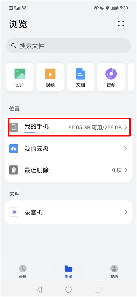 1、打开手机自带的文件管理器,点击“我的手机”一栏;
