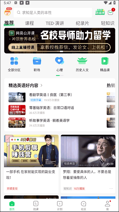 网易公开课已推出iPhone、iPad、安卓、网页等多种版本,并实现多端间的课程收藏与播放记忆同步,让您的学习体验无间断。希望自己能够在学业上有所进步的同学,就快来下载吧。