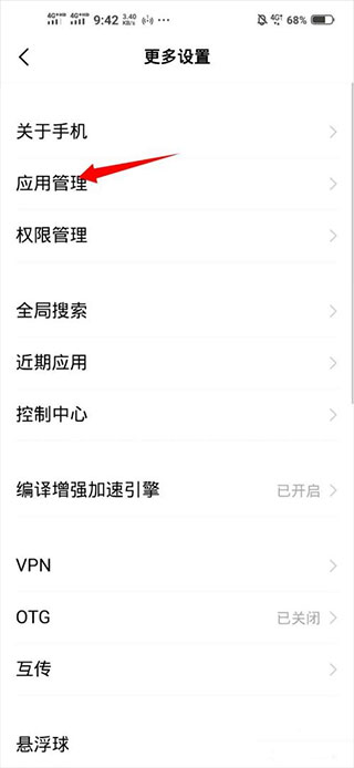 3、打开手机的设置,点击更多设置-应用管理;