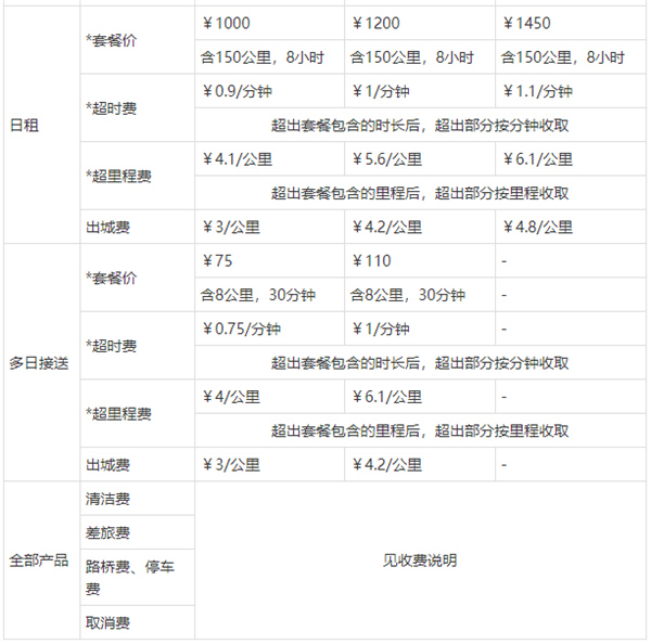 1、服务类型:随叫随到、预约用车、接/送机、日租/半日租