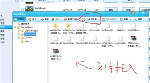 5、点击上传到设备上传漫画即可,或者拖入空白的地方,也是可以上传到软件的。