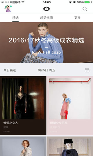 2、通过天天时装App已经制作了数万篇时装笔记,涵盖街拍、T台、Lookbook等。App提供了国、内外五千多个设计师品牌的当季、下季和往季作品供您检索,并且还在不断增加中。你还可以关注你感兴趣的时装款型、品牌与设计师,实时收到更新消息,跟踪全球潮流动向。