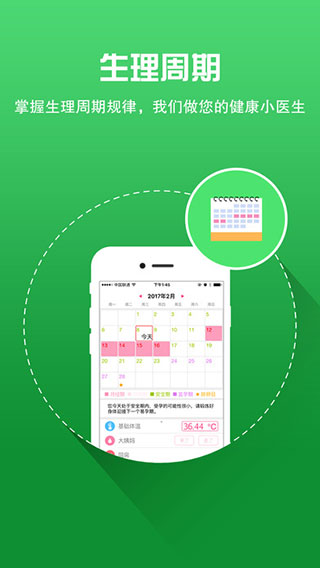 2、自动绘制基础体温曲线图并标注排卵日、经期等。