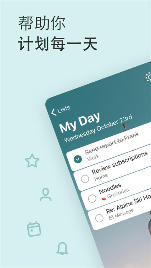 Microsoft To-Do是一款教你如何规划时间的软件,别名为微软待办事项应用,助你轻松的度过每一天,还在为一天到晚忘记要做什么了,时间老是不够而烦恼吗,有了此软件个人生活或家庭学习,To-Do 的“我的一天”和智能“建议”功能让你能每天更专注地完成最重要的事情。To-Do 支持iPhone、安卓、Windows 10 和网页间无缝同步,让你随时随地访问所有待办事项.你可以从手机或电脑快速访问、添加、管理并安排你的任务清单和待办事项;也可以为重要的待办事项设置提醒和截止日期。你还可以为必需每天处理的待办事项设置重复提醒,信息软件友好的提醒确保您从此不再忘记重要的最后期限,有兴趣的快来下载吧!