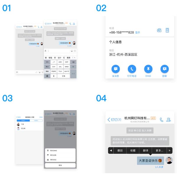 【即时沟通】:消息列表分类呈现,紧急消息一DING即达,跨组织沟通安全有序,为你提供专注、高效、安全、即时的聊天体验,让业务交流和信息流通在聊天中自然高效发生。