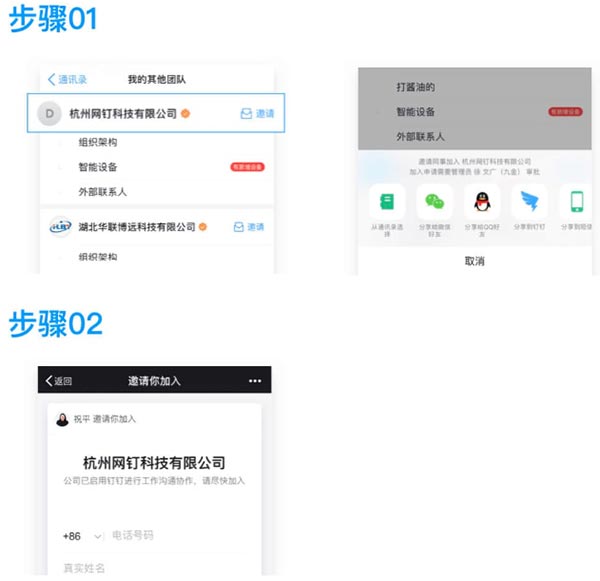 2、对方打开你的邀请链接选择加入企业后,下载钉钉即可使用。