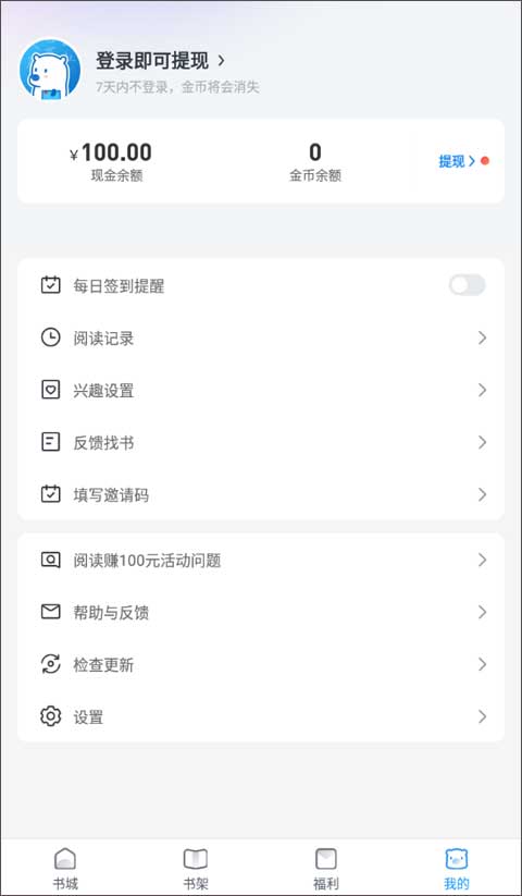 4、在我的界面中,用户可以查看自己阅读的记录,如果书城中没有你想要阅读的小说,还能启用反馈找书功能,让您更好地体验阅读服务。