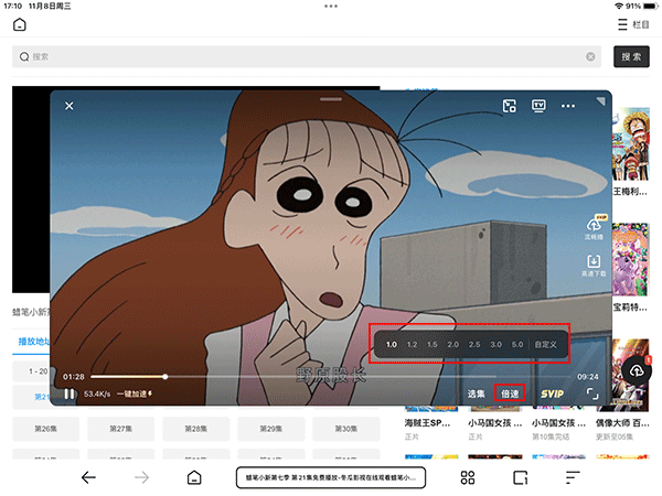 【无限倍速】支持0.5-5倍速播放,还可以自定义倍速