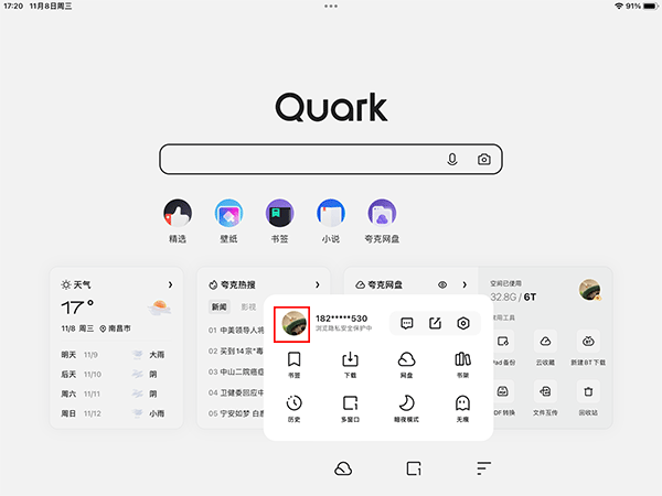 夸克ipad版是一款追求简洁并且集合搜索、识图、ai语音聊天、阅读电子书为一体的一站式软件,专为ipad用户设计的。该软件界面极度简洁,不仅拥有智能搜索、语音搜索、夜间模式、无痕浏览、视频播放等功能,可以轻松管理书签、历史记录和标签页,让用户更加方便地浏览网页,同时还支持多种搜索引擎,让用户可以根据自己的喜好和需求进行选择