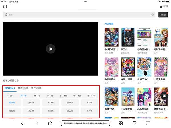 1、首先在首页搜索栏中输入你要观看的电视、电影或动漫