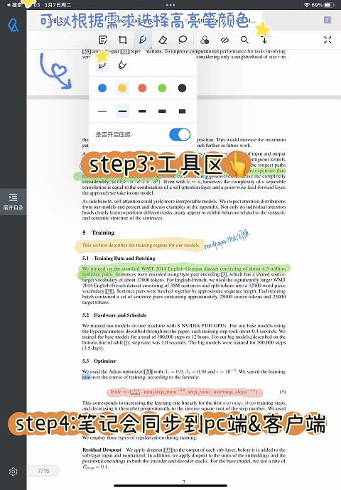 2、工具区选择及调整做笔记工具,划重点,框选丝滑流畅