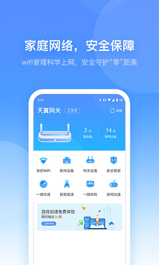 小翼管家是中国电信打造的智慧家庭管理应用,不仅能够统一管理智能家居设备,还能管理好家庭WiFi网关,尤其是WiFi中来蹭网的陌生设备,会直接影响你的网速,这时你就可以设置防蹭网拉黑他们的设备。