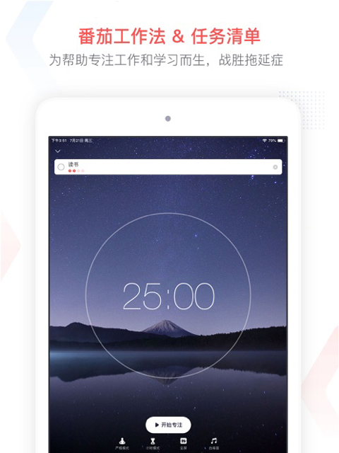 1、番茄钟:功能强大的番茄钟,计时期间请保持专注
