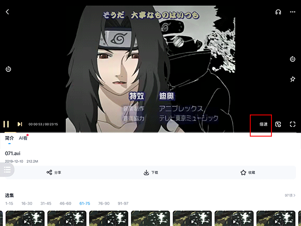2、然后在播放界面内点击一下屏幕,在点击倍速功能