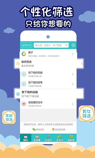 3、提供妈妈和宝贝最爱的胎教音乐、儿歌童谣、儿童故事、睡前童话