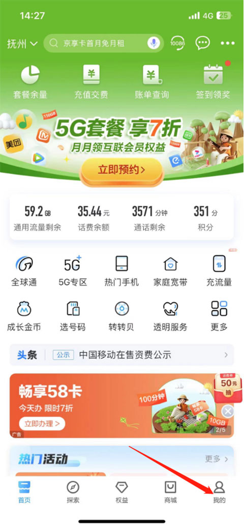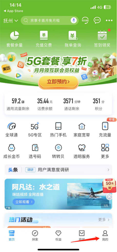 1、登录中国移动APP,点击页面右下角“我的”页面。