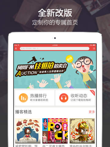凤凰fm ipad版是一款专为ipad用户群体打造的多平台移动网络广播软件。不仅拥有凤凰独家、播客精选等比较高大上的深度时政新闻栏目,还涵盖时下最热最新的今日头条、儿歌故事、相声评书、有声小说、公开课、生活健康等精选内容。另外专题和订阅也是一个特色,让用户有更多纬度的内容体验,针对时间推荐的栏目慵懒午后、深夜半小时等比较符合心境的内容,都是用户不错的选择。