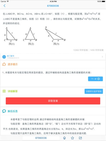 如果学生通过逐步提示学习还是不会,或者家长想检查孩子作业,必须由家长输入监护密码,即可查看详细解答过程。