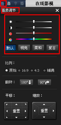 当您收看本地电影或暴高清影片时,您可以调节画质。具体操作为: