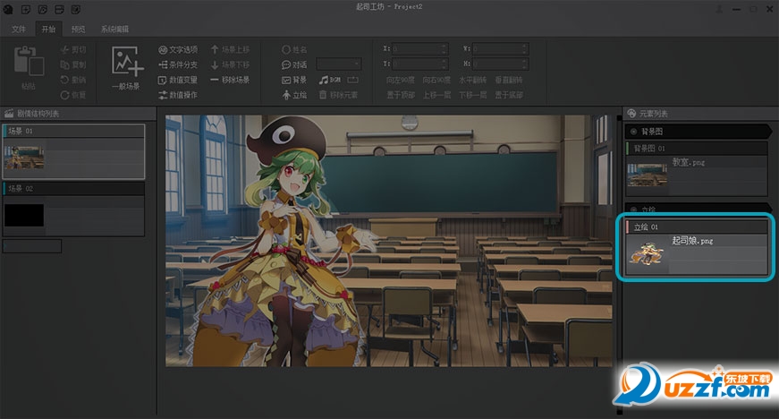 选中场景后,在“开始”选项卡上,单击“立绘”,选择电脑本地的立绘图片。立绘图会在右侧元素列表显示。