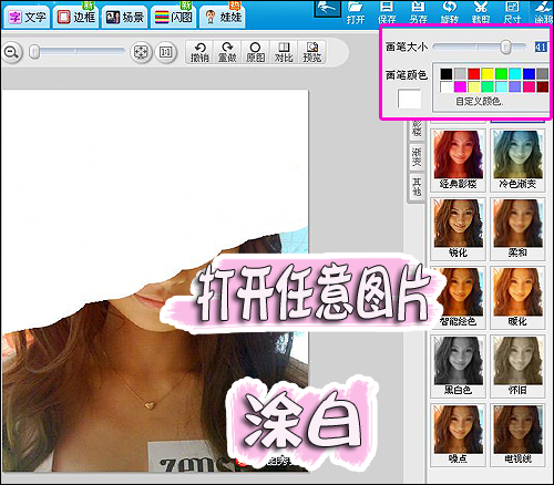 4、将倒影部分做好后,把它保存起来作为素材备用。然后重新打开一张竖状图片,用涂鸦笔刷白,做成背景。如图6所示。