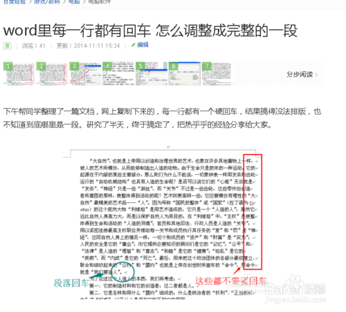 全部修改完成之后,ctrl+A全选,复制,粘贴到word里。此时会出现每一行末尾都有回车的情况,解决方法见百度经验《word里每一行都有回车 怎么调整成完整的一段》