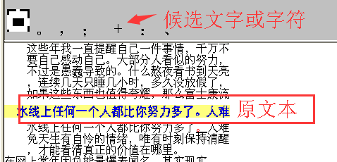 此时识别完成的文字里,标注为红色的文字或字符是软件不能确定的部分,点击红色字符,会给出候选的文字,选择正确的即可修改。