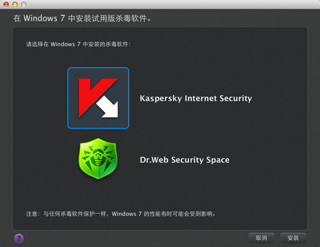 Parallels Desktop 为 Mac OS X 与 Windows 系统提供 Kaspersky 和 Dr.Web 杀毒软件的试用订阅。