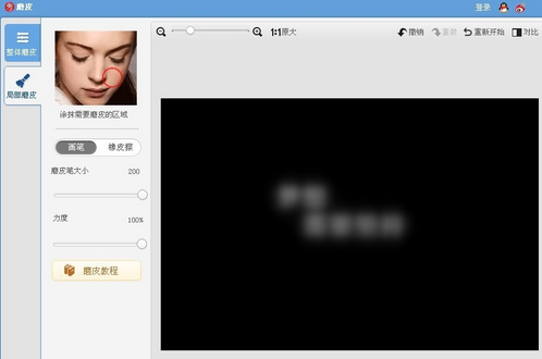 5、点美容,有个磨皮,要局部磨皮,力度要100,大小200
