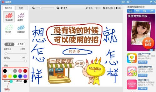 用美图秀秀打开一张图,点击左边的“涂鸦笔”就可以在你想画线的地方画线了。