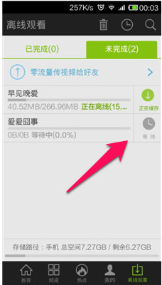 五、在这里即可看到离线下载的电影状态,等待下载完成了就可以直接播放啦。