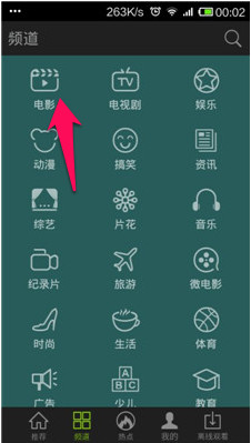 二、在频道这里选择自己想要打算下载类型的频道,小编选“电影”。