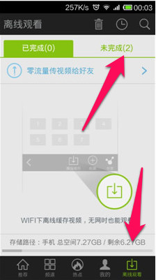 四、返回到爱奇艺首页,选择“离线观看”,再选择上面“未完成”。
