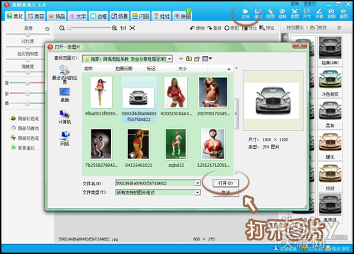 首先,用美图秀秀打开一张足球宝贝的性感照片,此处为宾利车,兄弟们见谅,你们懂的……