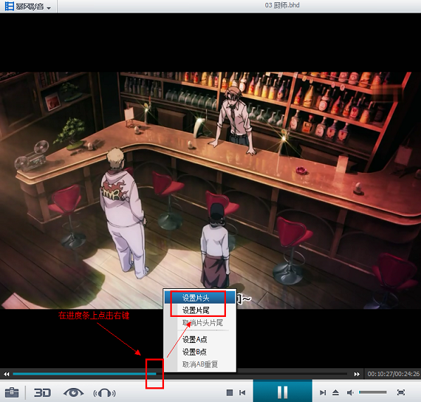 暴高清资源可以自动跳过,本地视频需要您在播放进度条上单击右键设置片头与片尾位置,设置好后即可跳过。