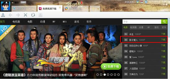 当然只是在迅雷7上面下载电影的方法。如果是在迅雷官网下载电影的话,在百度上搜索”迅雷官方网站“登陆到迅雷官网。进入到官网的首页,在上面找到搜索框,输入需要下载的电影名字,比如输入“影子爱人”即可打开弹出影子爱人的相关视频网页。然后点击上面的“免费下载-下载影片”如图所示:
