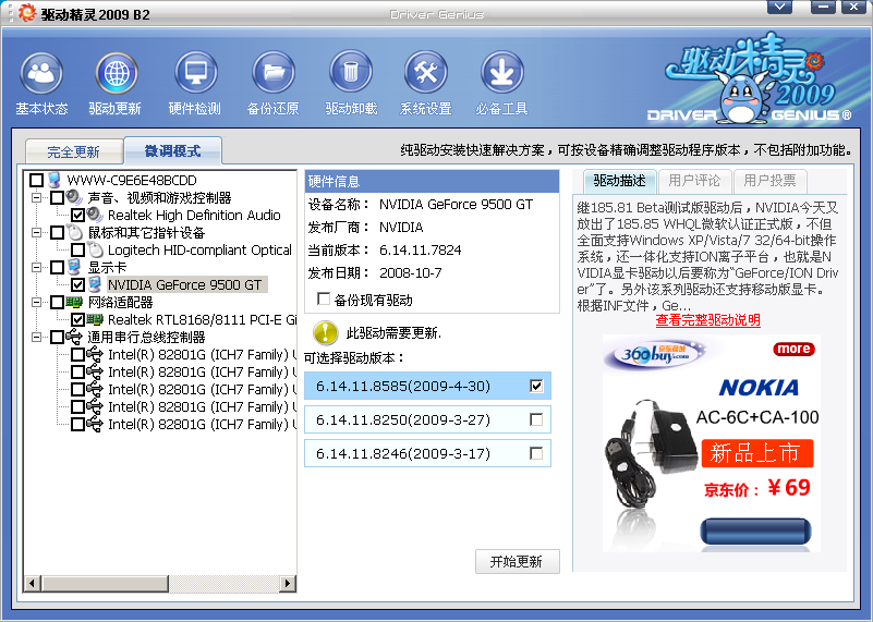 “完全更新”部分:完整更新提供的驱动为最新官方可执行文件包,驱动存放的位置为您在安装时设定的路径,因为完整可执行驱动包的体积较大,驱动精灵支持断点续传功能,如果您的时间有限不能一次下载完所有的驱动,您可以在其他时间继续下载。同样,在完整更新的右侧功能区,我们也有驱动说明和评论和投票功能.