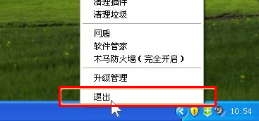 右键点击托盘区图标,在弹出菜单中选择“退出”。