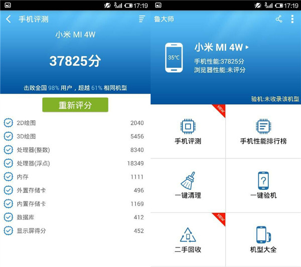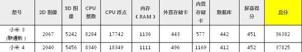 鲁大师测试的小米3(联通版)与小米4测试详情