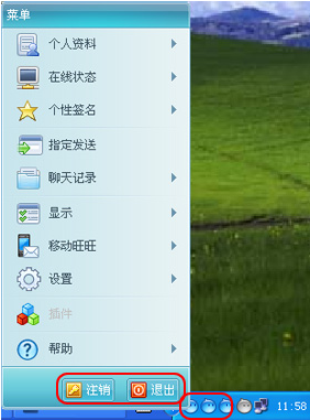 也可以右键点击操作系统右下角的旺旺托盘图标,然后点击“注销”按钮进行注销操作: