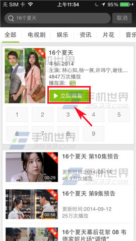 2、点击搜索后就会直接把你填写的电视剧搜索出来,你可以点击【立即查看】即可收看电视剧了。