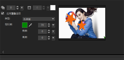 1、打开会声会影x7新建一个项目,点击“轨道管理器”将“覆叠轨”的数量调制3个,在覆叠轨2中插入之前编辑好的一个子文件(覆叠轨2右击,选择插入视频,即可),在覆叠轨1中插入一张照片素材,双击覆叠轨2中的子文件,在弹出的“属性”栏中,选择“遮罩和色度键”,勾选“应用覆叠选项”在“类型”种类中选择“色度键”颜色选择子文件中透明素材的颜色,调整数值,如果背景图片没有相似的颜色,那相似度的数值可以调的稍大一些,如果背景有相似的颜色,那就将数值调小即可,尽量避免颜色过于接近