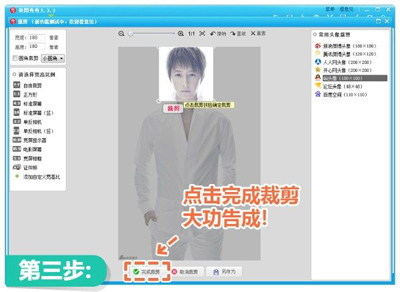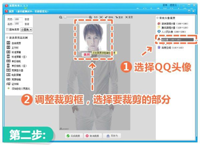 第二步:进入剪裁编辑框,在右侧“常用头像剪裁”中选择QQ头像(100*100),然后调节剪裁框中图片显示区域。