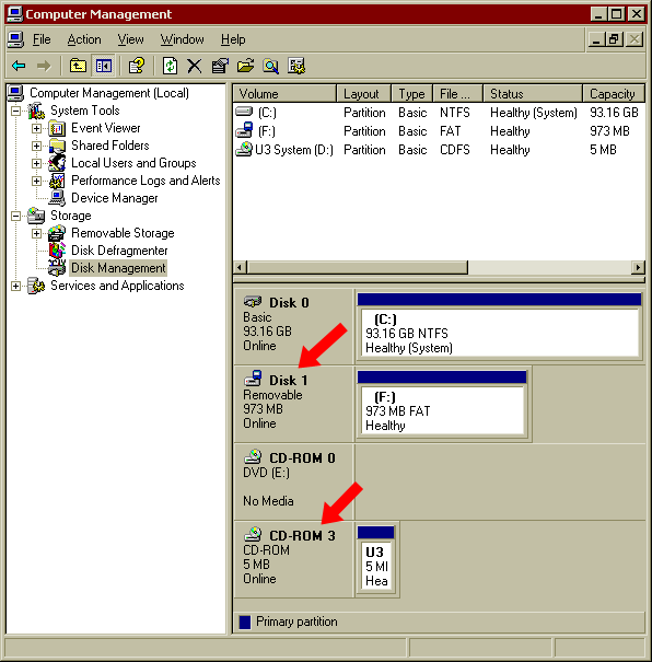 1. 在右控制面板,找到您的Cruzer闪存盘相应的可移动磁盘和U3。